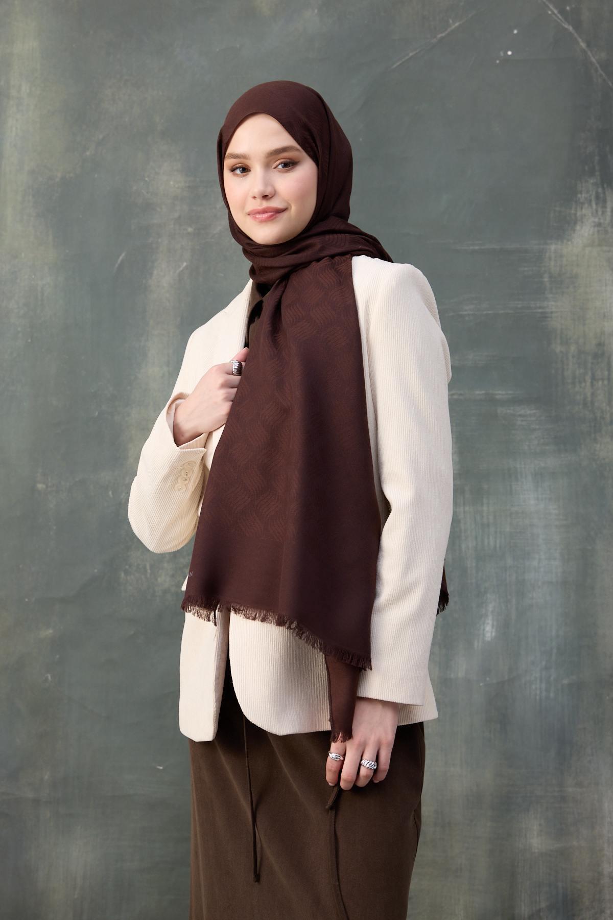 Dalga Desen Pamuk Jakar Şal Acı Kahve 8010-16