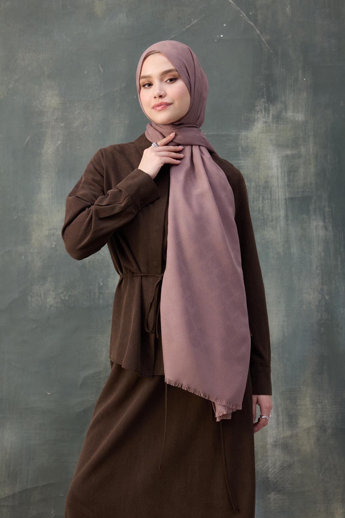 Dalga Desen Pamuk Jakar Şal Gül Kurusu 8010-01