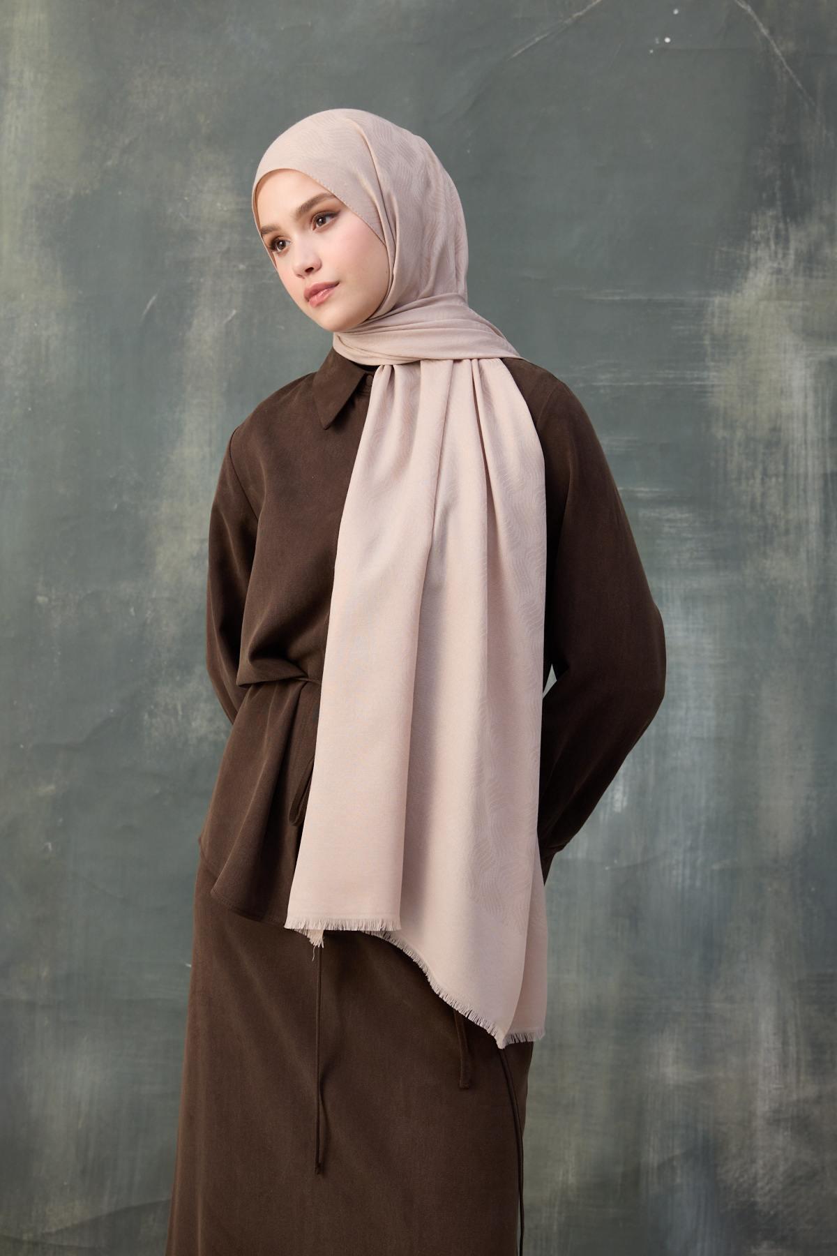 Dalga Desen Pamuk Jakar Şal Uçuk Pembe 8010-22