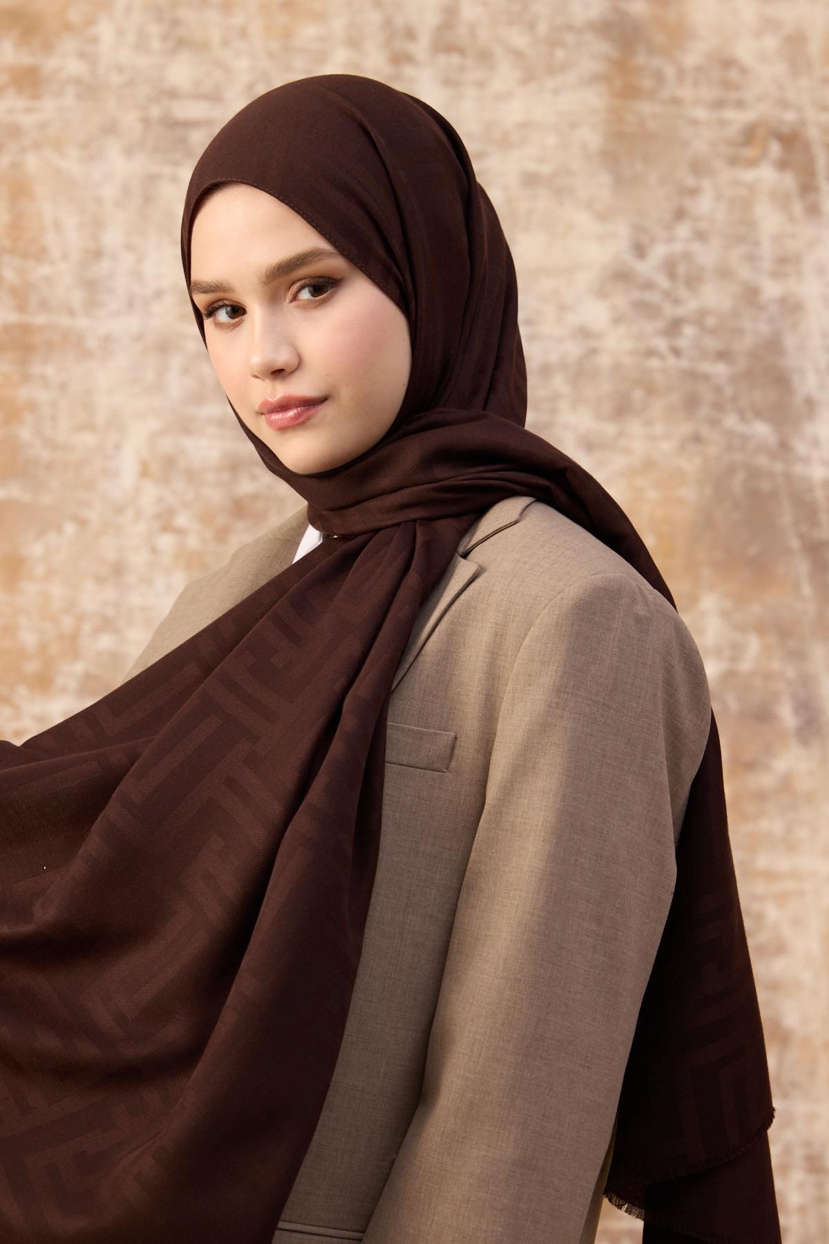 Fendi Desen Pamuk Jakar Şal Acı Kahve 8009-16