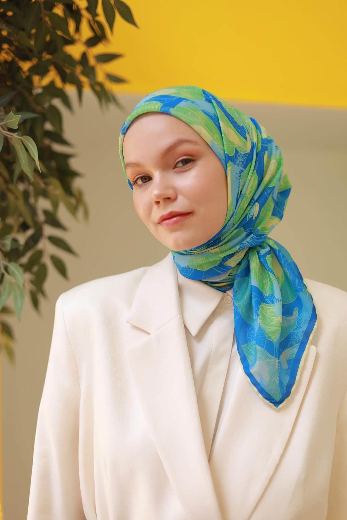 90x90 cm ideal ölçüsüyle, ister klasik ister modern bağlama stilleriyle kolay kullanım sağlar.