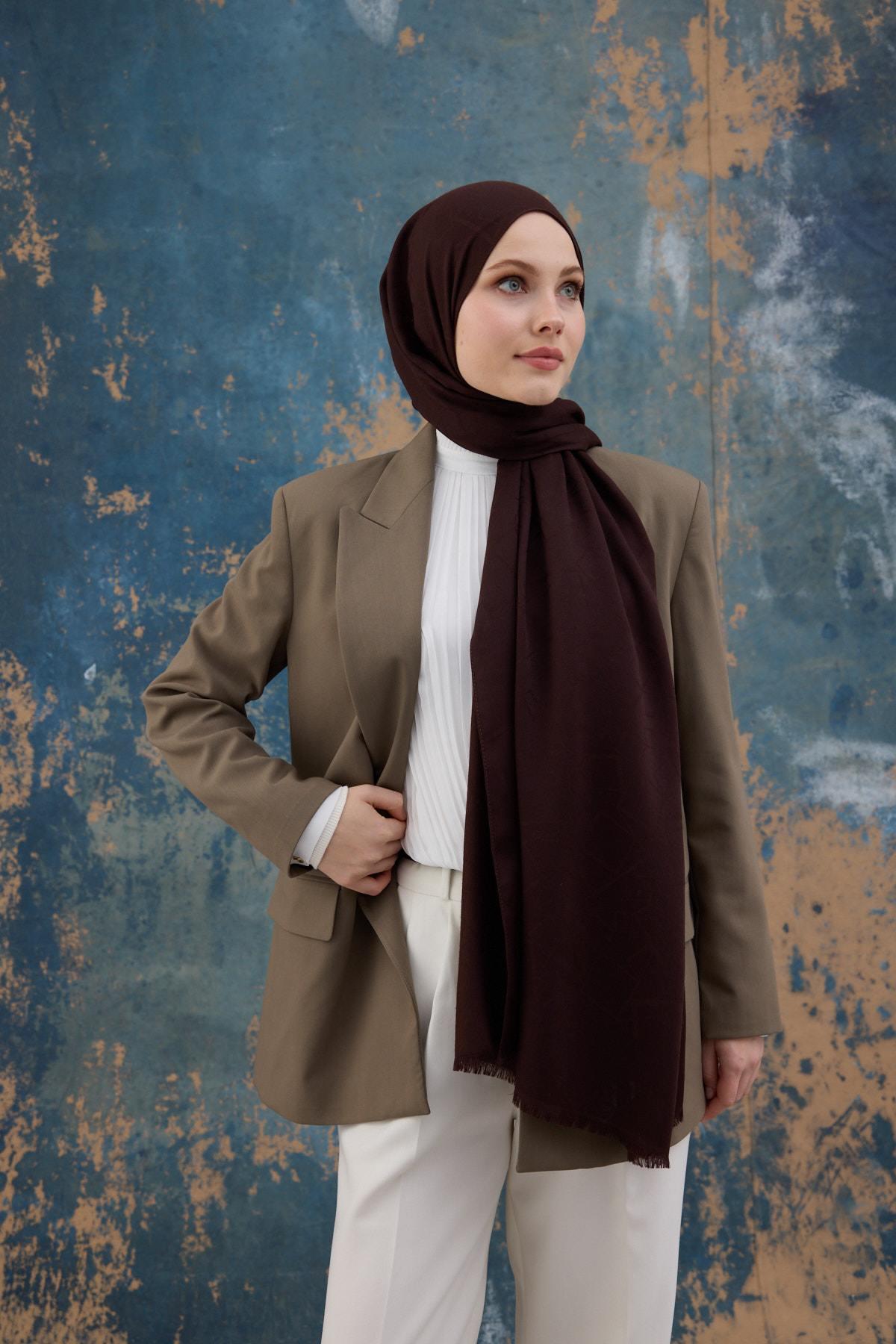 Kare Desen Pamuk Jakar Şal Acı Kahve 8012-16