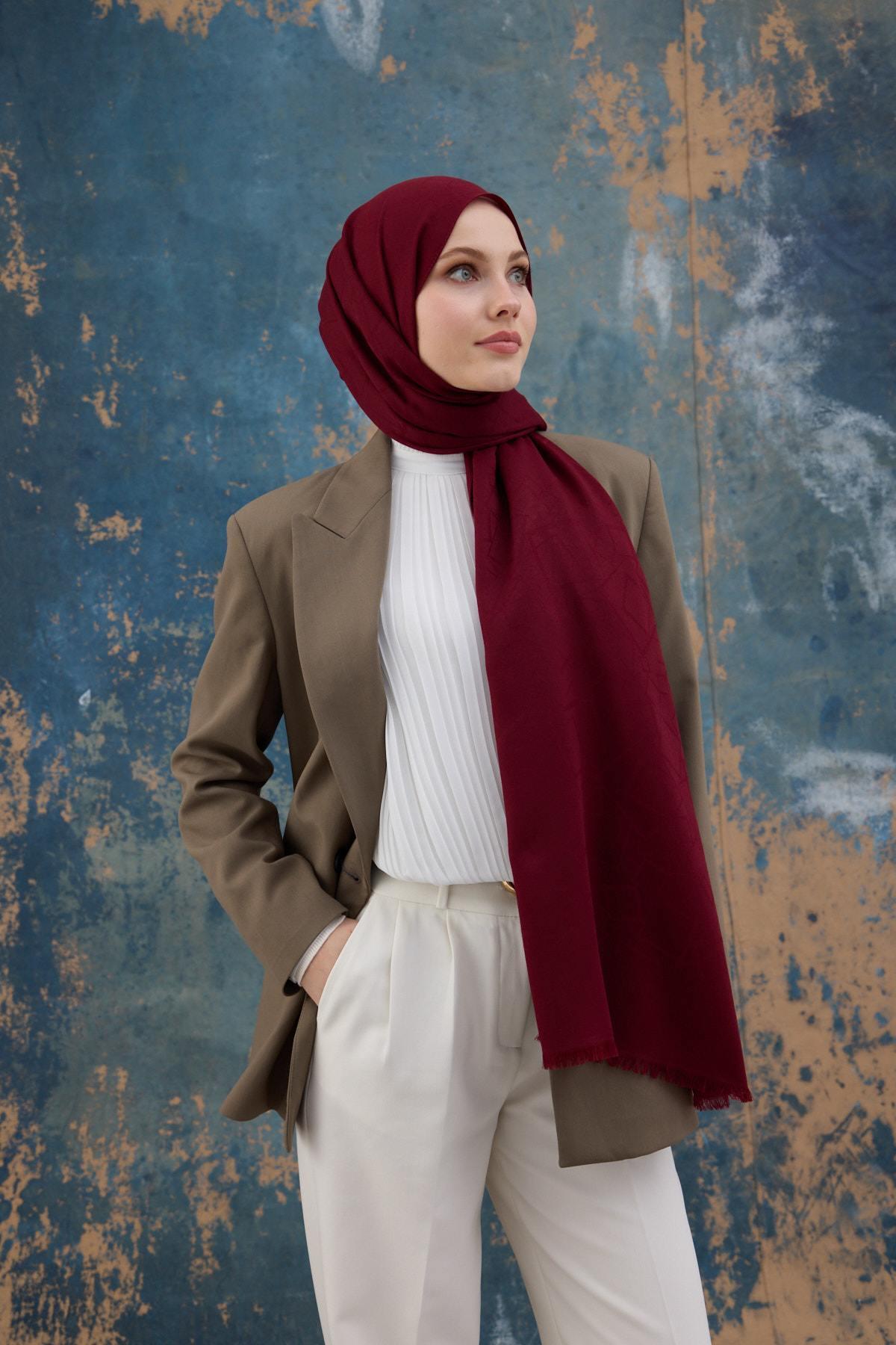 Kare Desen Pamuk Jakar Şal Bordo 8012-02