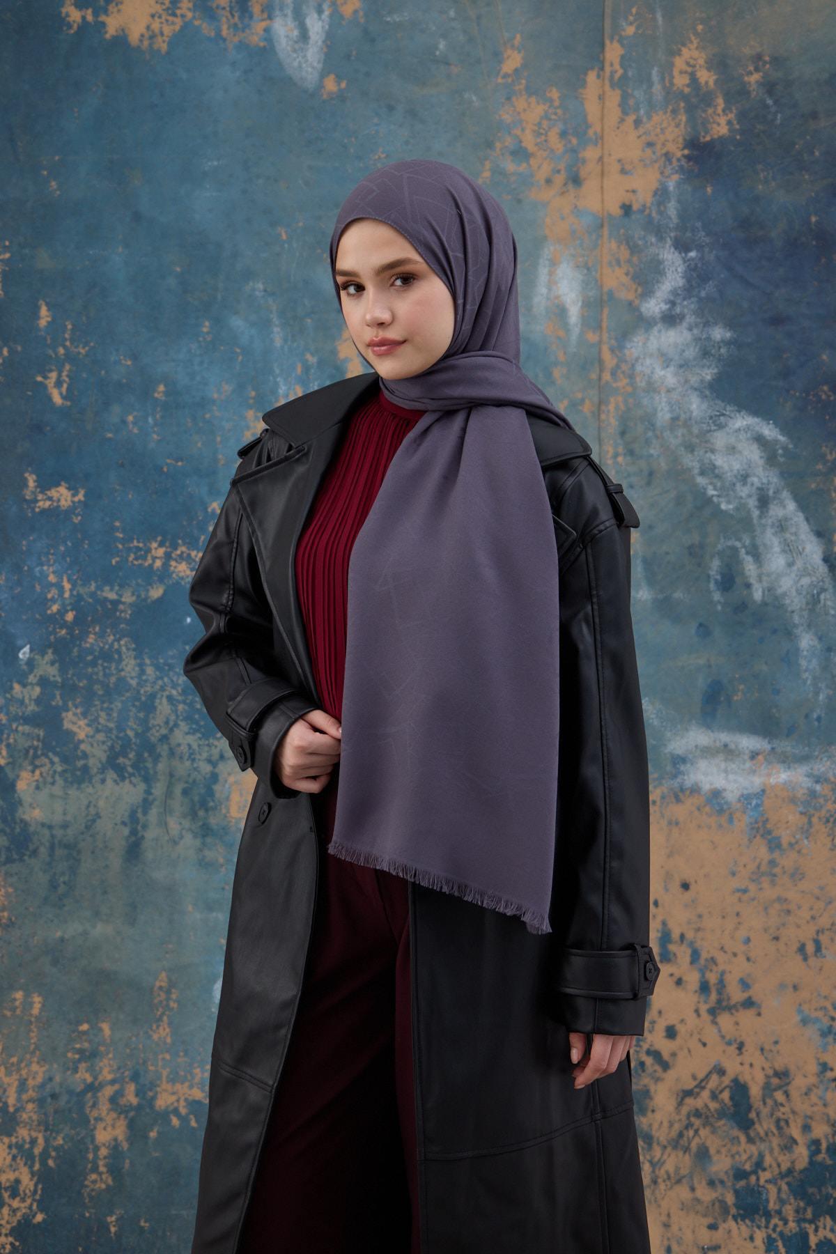 Kare Desen Pamuk Jakar Şal Füme 8012-05