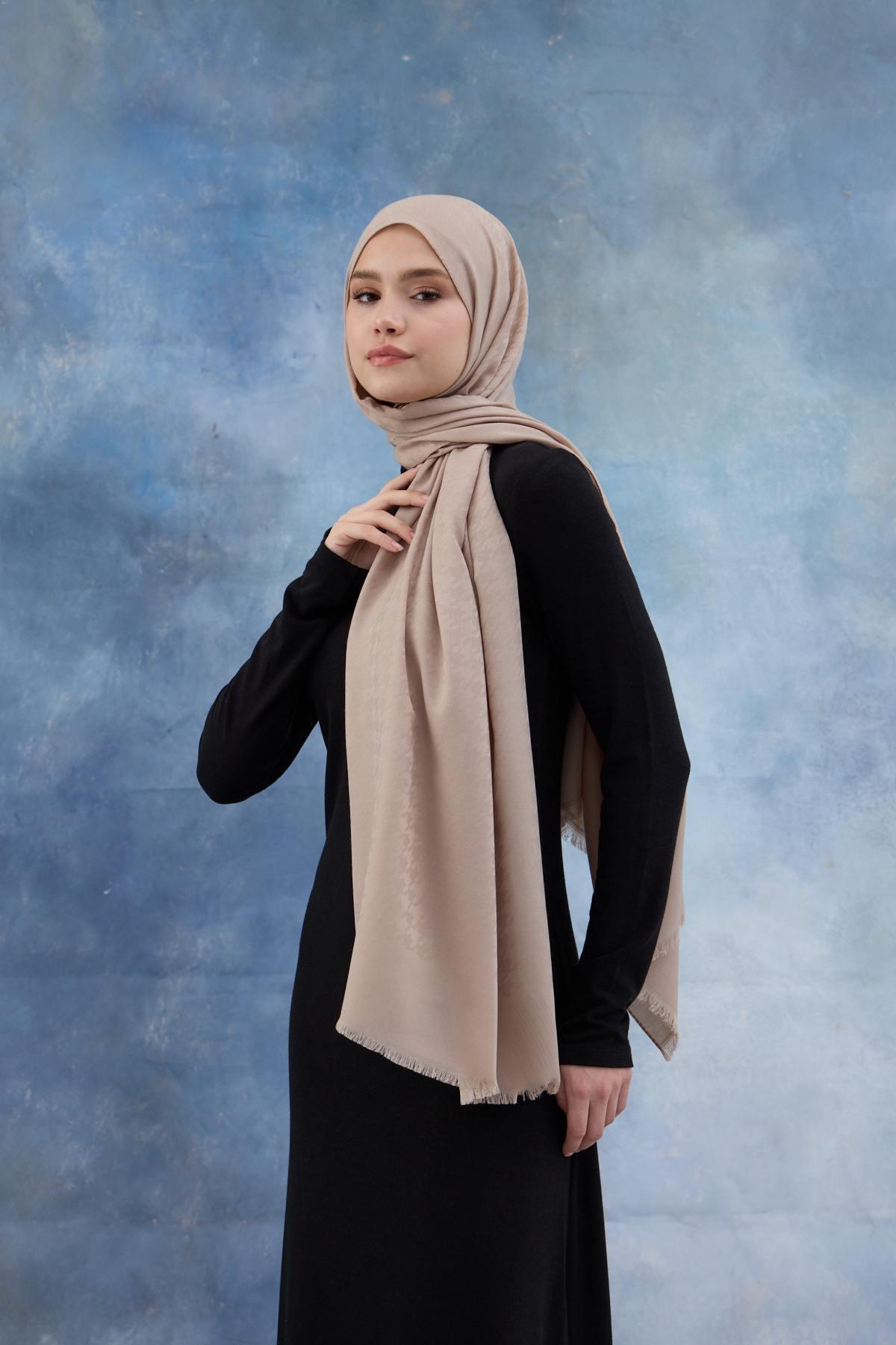 Kaz Ayağı Desen Pamuk Jakar Şal Bej 8011-27