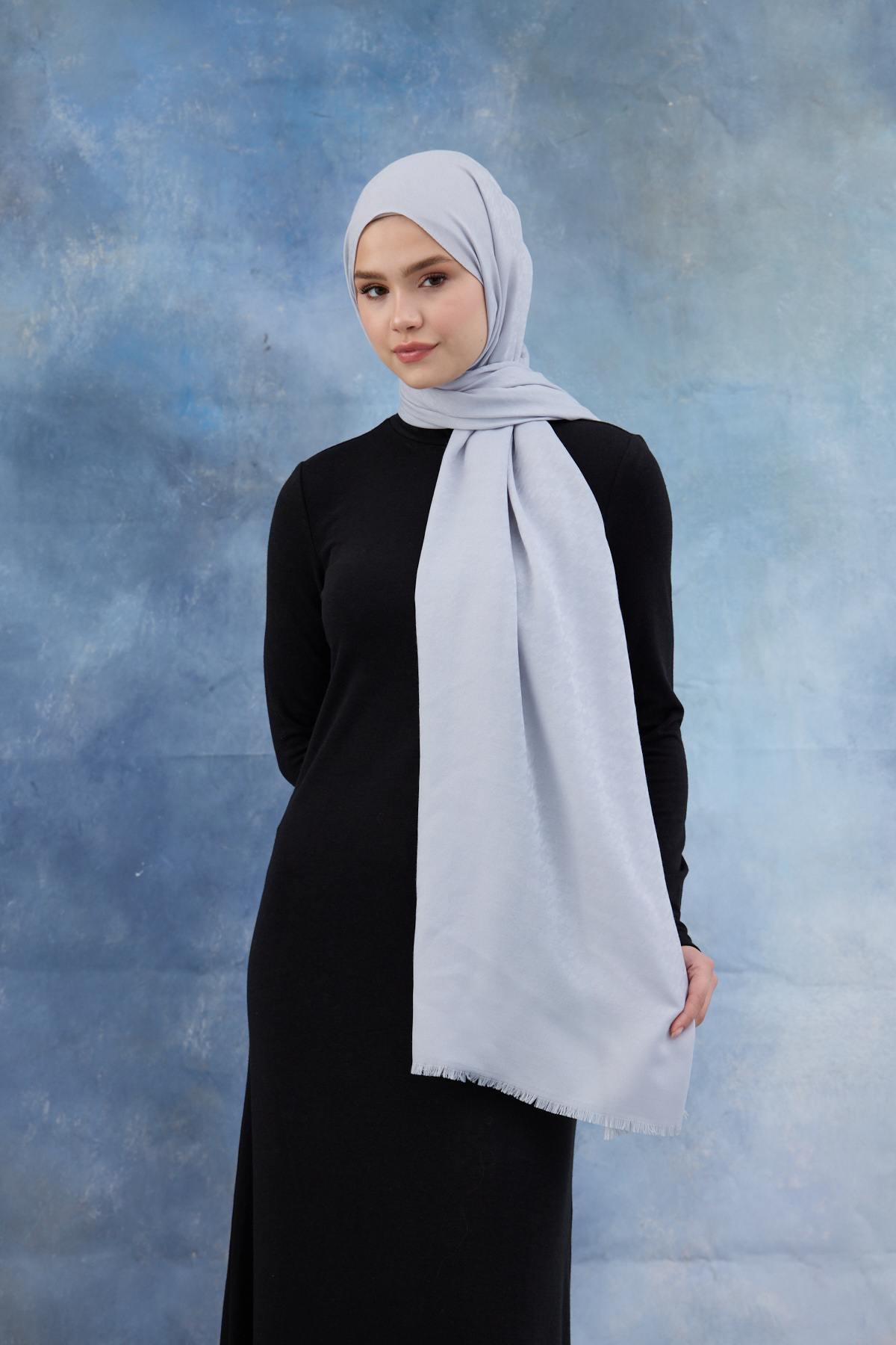 Kaz Ayağı Desen Pamuk Jakar Şal Gümüş 8011-06
