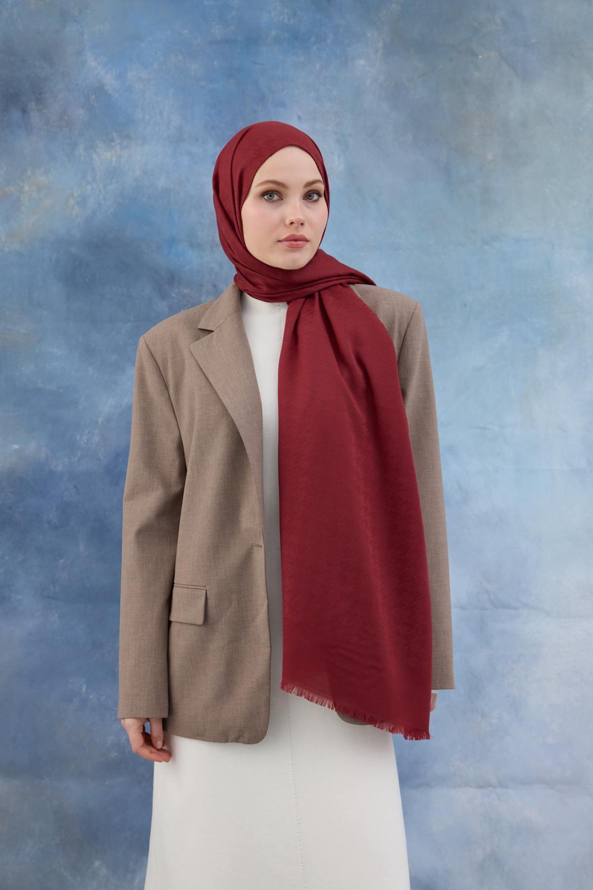 Kaz Ayağı Desen Pamuk Jakar Şal Kırmızı 8011-15
