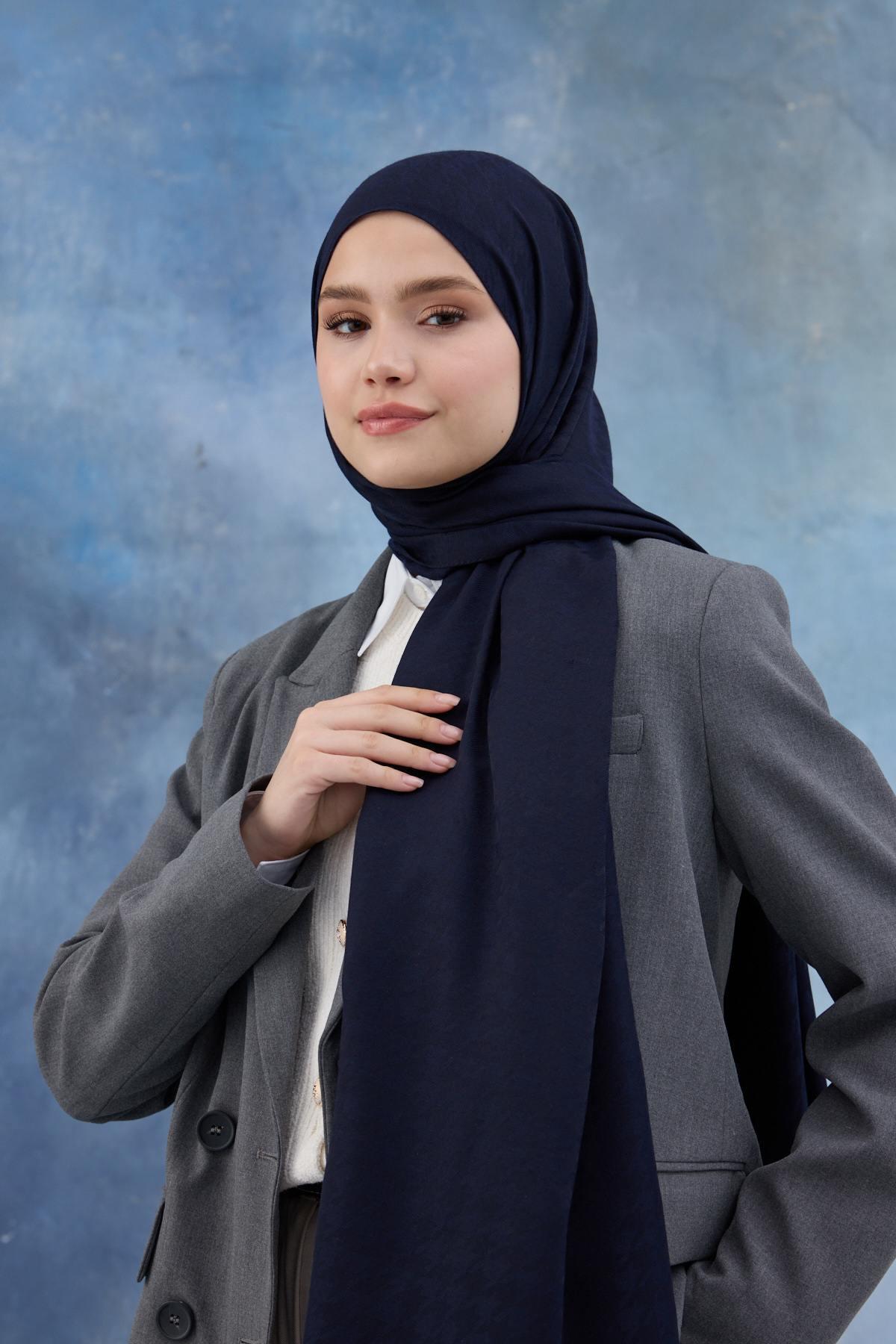 Kaz Ayağı Desen Pamuk Jakar Şal Koyu Lacivert 8011-07