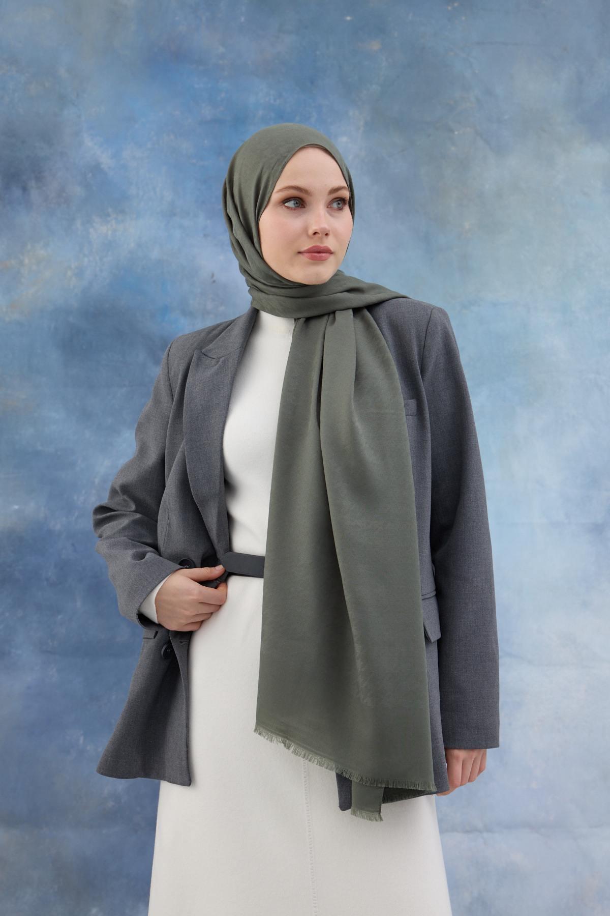 Kaz Ayağı Desen Pamuk Jakar Şal Yosun 8011-14