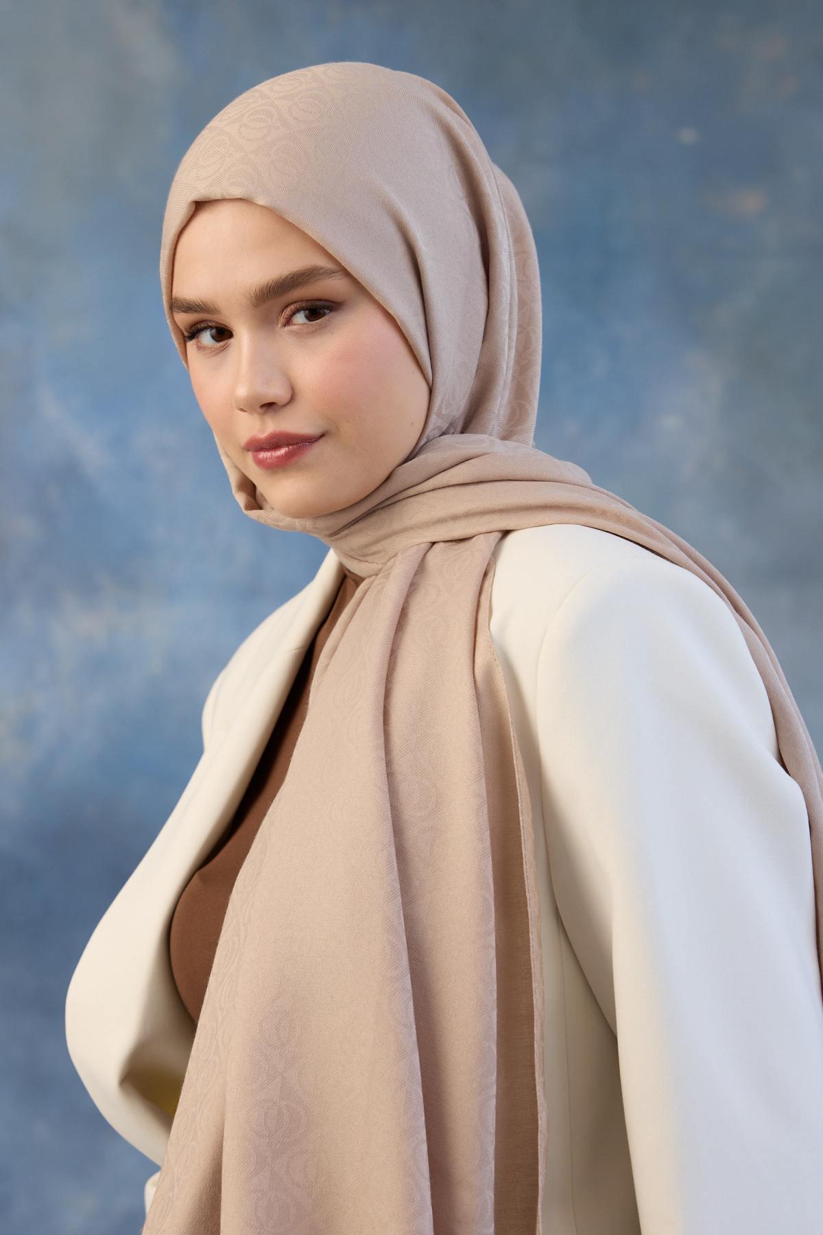 Logo Desen Pamuk Jakar Şal Bej 8008-27